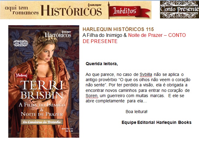 Ah, eu estou ansiando pelo "Filha de Inimigo" para completar minha trilogia "Cavaleiros de Bretanha", que está prometendo ser ótima e revigorante !!! Obrigada !!!