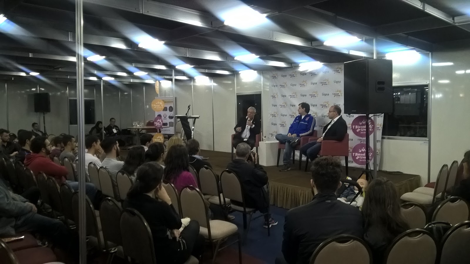 Literatura e Esporte foi o tema da última mesa redonda do dia no Auditório 1, com os professores Márcio Guerra e Maurício Bara e o apresentador e narrador da ESPN Brasil, Dudu Monsanto.