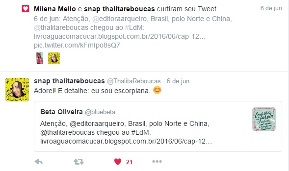 E claro que rolou tietagem, né? Achou que eu perderia a chance? Ainda mais depois de algumas coincidências: ela também tinha dentes tortos na adolescência e começou a usar óculos nesta mesma época. Sem contar que Thalita e eu somos escorpianas – ela do dia 10 e eu do dia 13.