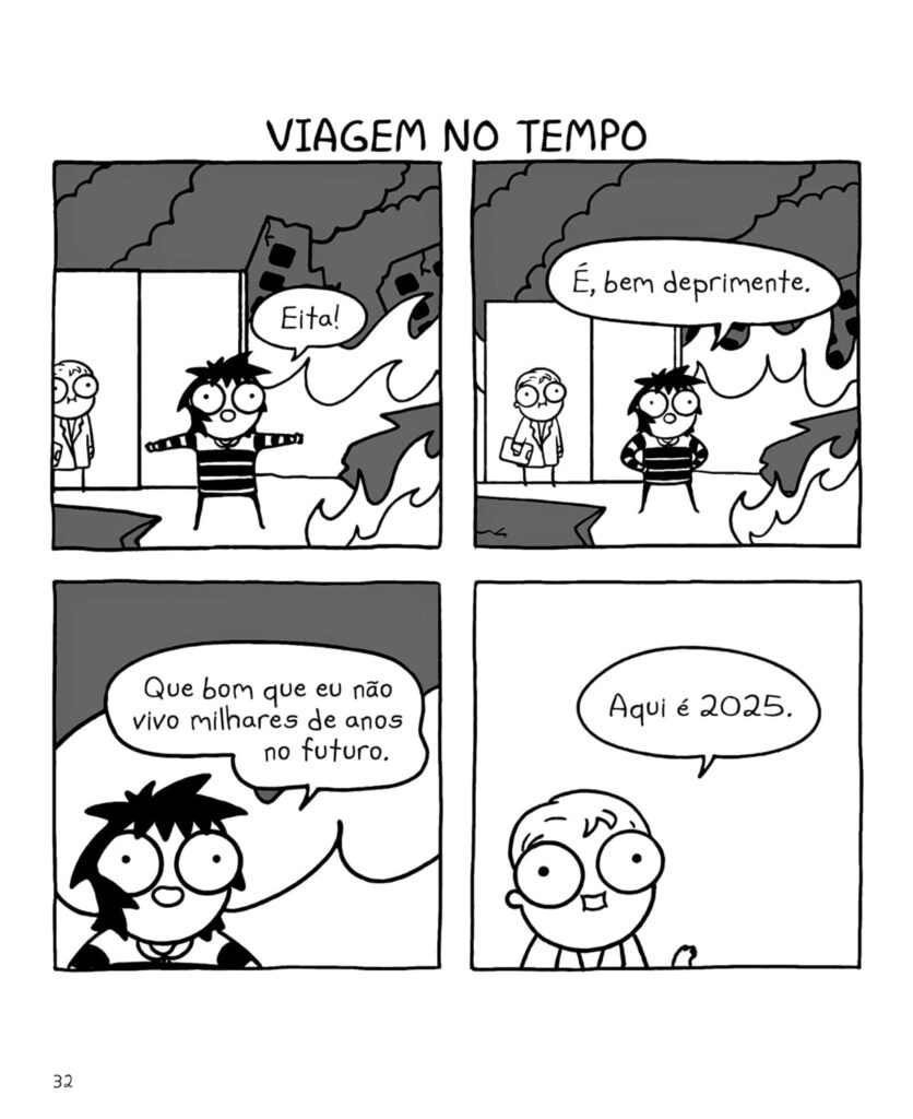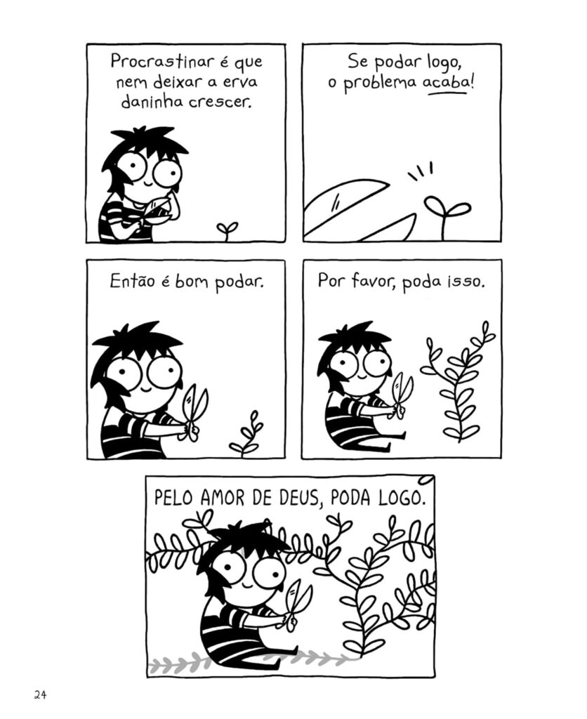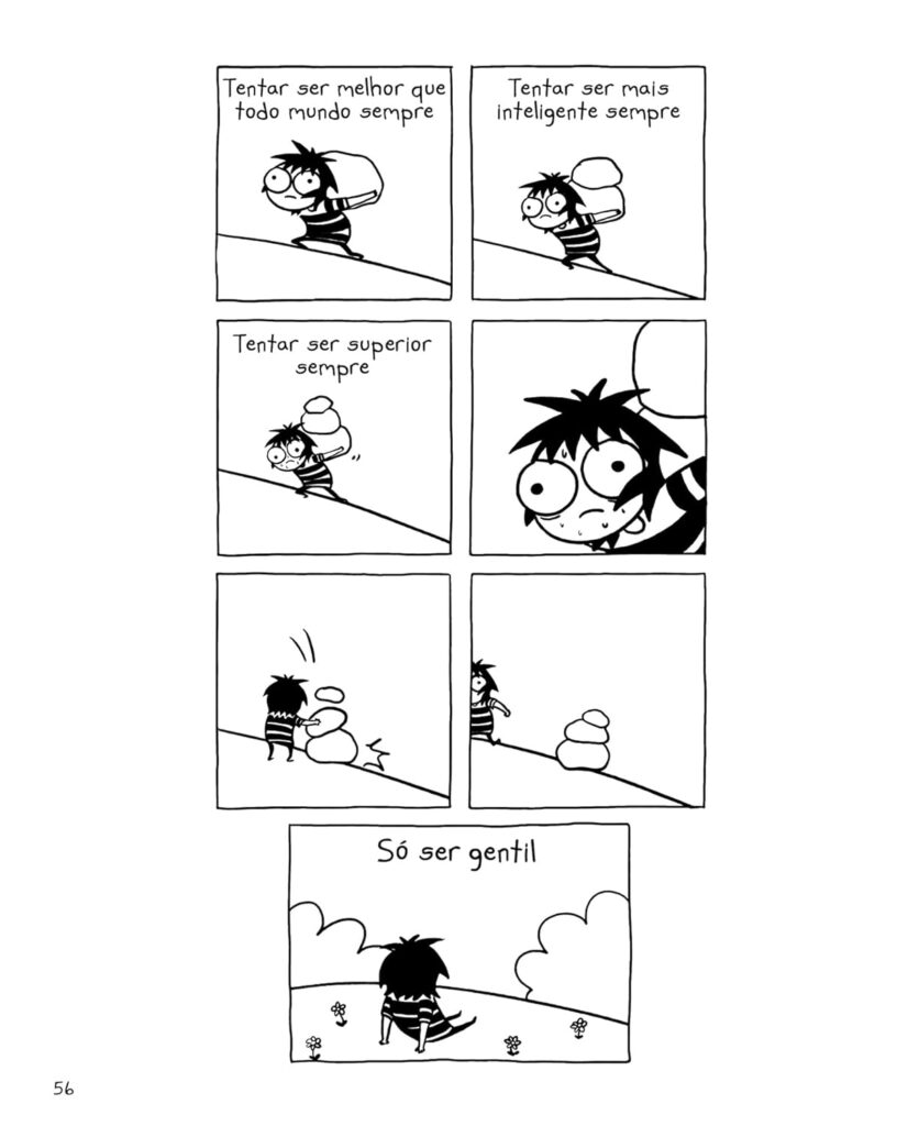 E todas aquelas vezes que você teve a certeza de que não daria conta, ou mesmo crise de ansiedade e angústia diante da sequência quase eterna de notícias ruins? Pois é, do jeito Sarah Andersen de retratar, isso também está na coletânea.
